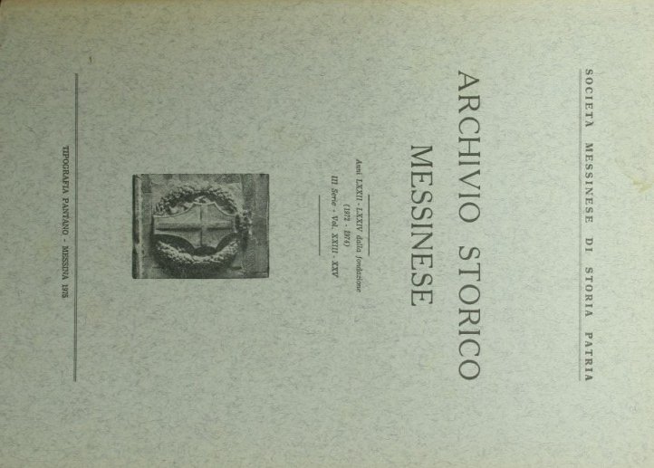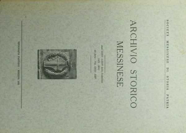 Anni LXXII-LXXIV dalla fondazione - Collana Società Messinese di Storia Patria. III Serie - N. XXIII-XXV - in 8° - pp.310 - Brossura editoriale illustrata - Illustrazioni in b/n fuori testo, una tavola in b/n ripiegata fuori testo