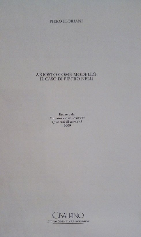 ARIOSTO COME MODELLO: IL CASO DI PIETRO NELLI - ESTRATTO DA "FRA SATIRE E RIME ARIOSTESCHE", QUADERNI DI ACME 43