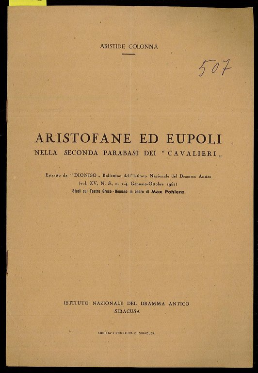 Aristofane ed Eupoli nella seconda parabasi dei "Cavalieri"