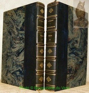 240x155mm, VIII - 403 + 505 pages, reliure demi-chagrin avec titre, auteur, tomaison, fleurons et filets dorées au dos à faux-nerfs. Plats papier marbré. Tranche supàrieure dorée. Couvertures conservées. Belle reliure, hormis coiffe supérieure du tome second abimée. Bel exemplaire.