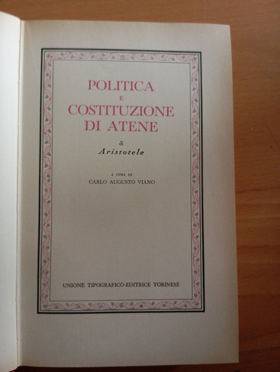 Aristotele, Politica e costituzione di Atene, UTET, 1995 | Rare and modern books |