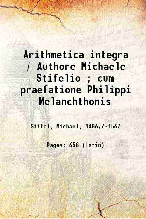 Arithmetica integra / Authore Michaele Stifelio ; cum praefatione Philippi Melanchthonis 1544