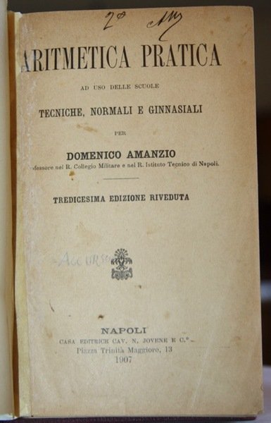 ARITMETICA PRATICA Ad Uso delle Scuole Ginnasiali e Tecniche e dei Collegi Militari per DOMENICO AMANZIO | Rare and modern books | Domenico Amanzio