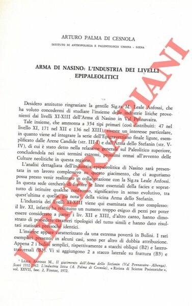 - (Liguria - Savona - Arma di Nasino - Speleologia - Archeologia, preistorica - Paletnologia - Epipaleolitico)