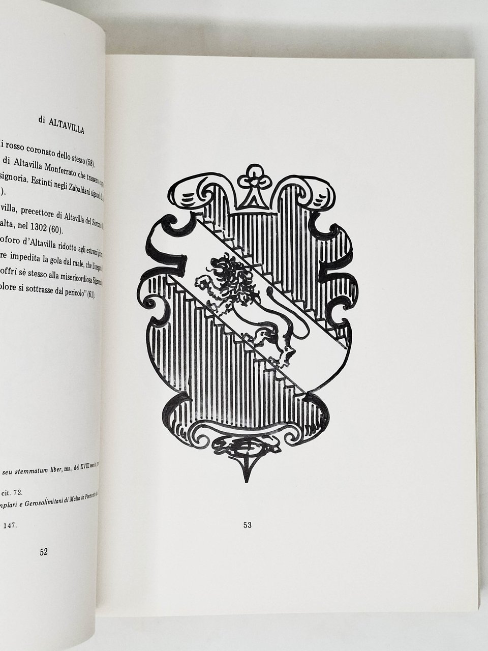 Stampato a Roma. Pagine: 584 + [6]. Formato: 20,5 x 27 cm circa. Stato di conservazione: piega sul dorso del volume (causata dall'apertura del libro) ma, nel complesso, un esemplare decisamente buono. privo di timbri, firme d'appartenenza, sottolineature, annotazioni o altri segni nel testo. Opera ricca di tavole illustrate in nero a piena pagina (fotografie e disegni) illustranti i molteplici stemmi araldici. Il volume passa in rassegna, in ordine alfabetico, le armi gentilizie e tratta, brevemente, i rapporti tra le insegne delle quattro dinastie che ressero il ducato di Monferrato dal 951 al secolo XX e il Santuario di Crea. Copertina editoriale flessibile in finitura lucida.