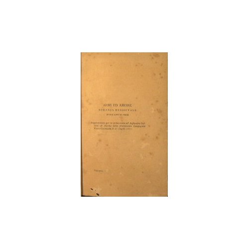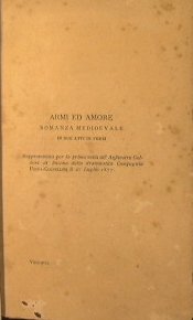 Romanza medievale in due atti in versi - in 16° - pp.187 - Tela - Discreto. - Legatura non originale. Piccole mancanze al frontespizio senza perdita di testo. Diffuse ingialliture alle pagine. - Si conservano della legatura originale parte del dorso e il piatto posteriore.