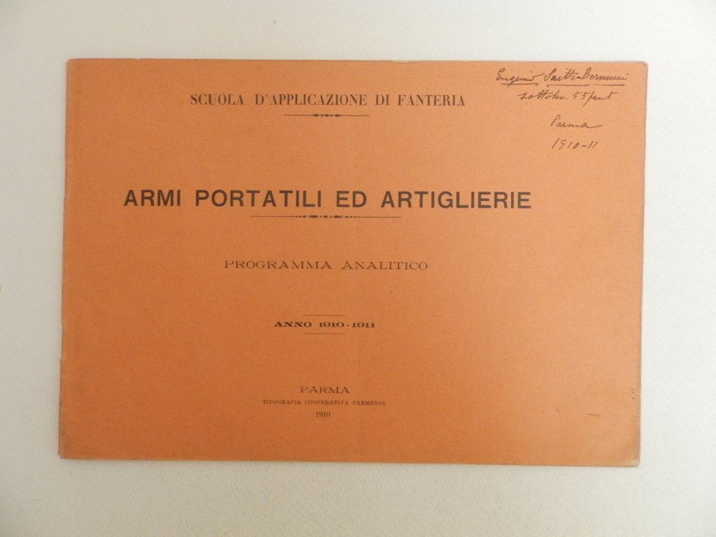 Armi portatili ed artiglierie. Programma analitico. Anno 1910-1911