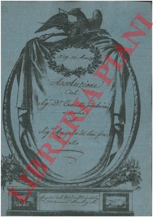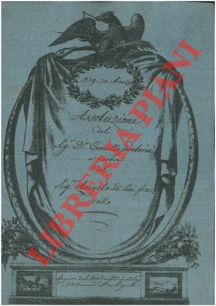 Bologna, 1839, marzo 30, rogito originale di 4 pp. in cartella con bella cornice xilografica, timbro a secco, firma del notaio Franco Marchignoli di Bologna