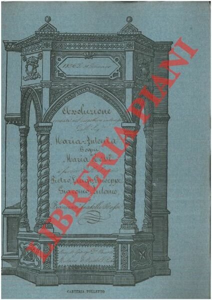 Bologna, 1856, gennaio 31, rogito originale di 12 pp. in cartella con bella cornice xilografica, timbro a secco, firma del notaio Nicolo Giorgi di Castel San Pietro