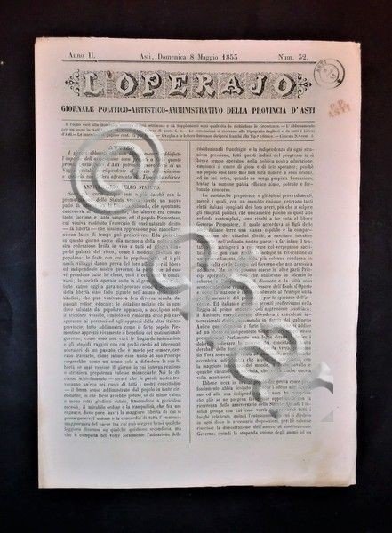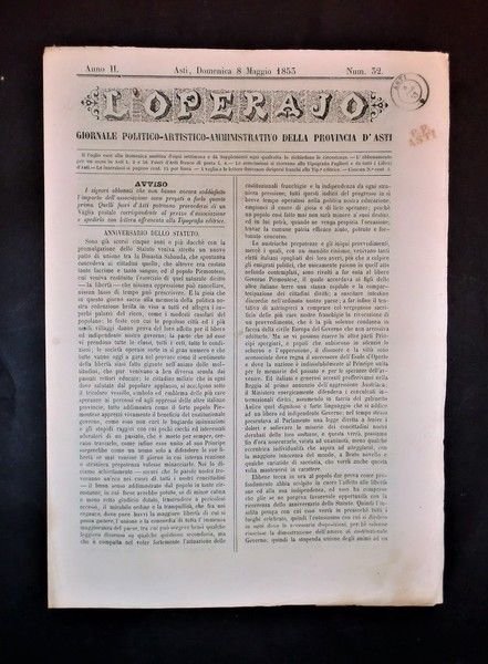Asti - Giornale L'Operajo (operaio) - N° 32 - Anno II - 8 Maggio 1853