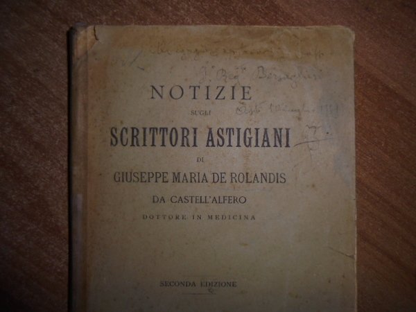 DE ROLANDIS Giuseppe Maria. Asti, tip. G. Brignolo, 1912. In-8°, br., cop. orig. xv, 134 pp. Mancano il frontespizio, le pp.: 85-86-109-110 e le ultime due dell' indice. Neg. mob.3