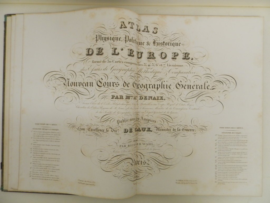 Atlas physique, politique & historique de l'Europe, formé de 30 cartes composant les 3e, 4e, 5e, 6e et 7e livraisons des Essais de géographie methodique & comparative, ou du Nouveau cours de géographie générale, par Mme. Ate. Denaix (...) gravé par Richard Wahl.