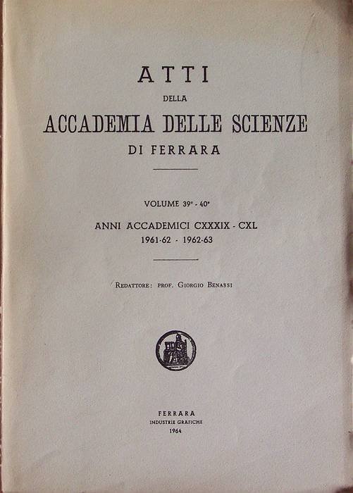 Atti della Accademia delle scienze di Ferrara: volumi 39° e 40°: anni accademici 139-140 (1961-1962 e 1962-1963).