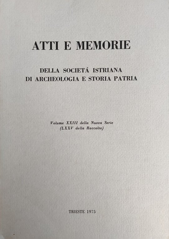 ATTI E MEMORIE DELLA SOCIETÀ ISTRIANA DI ARCHEOLOGIA E STORIA PATRIA