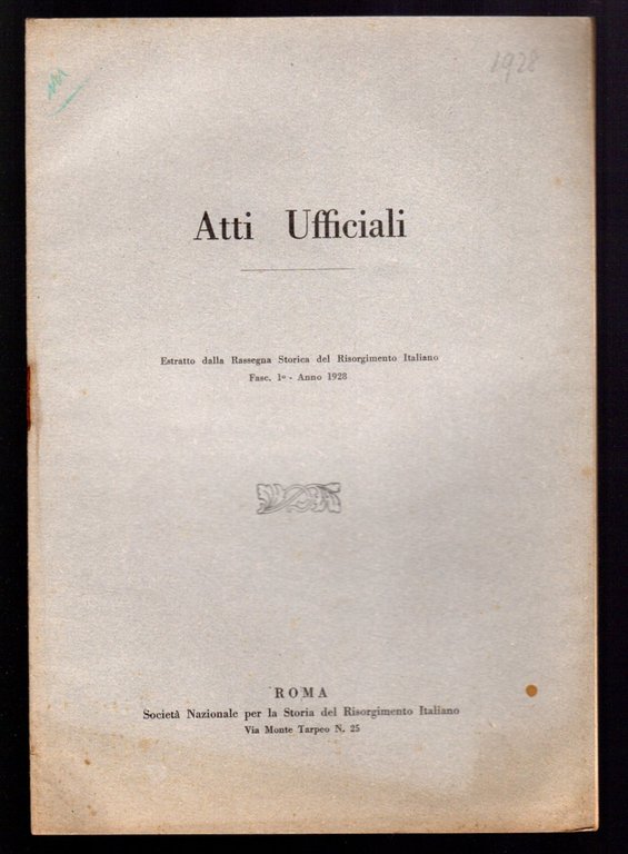 Società Nazionale per la storia del Risorgimento Italiano, 1928