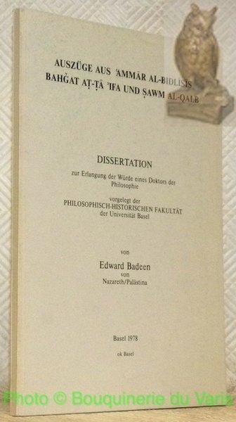 Auszüge aus Ammar Al-Bidlisis Bahgat at-ta ifa und Sawm Al-Qalb. Diss. | Rare and modern books | Badeen, Edward.