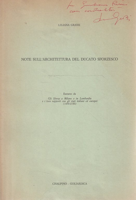 Autografato ! Note sull'architettura del Ducato Sforzesco