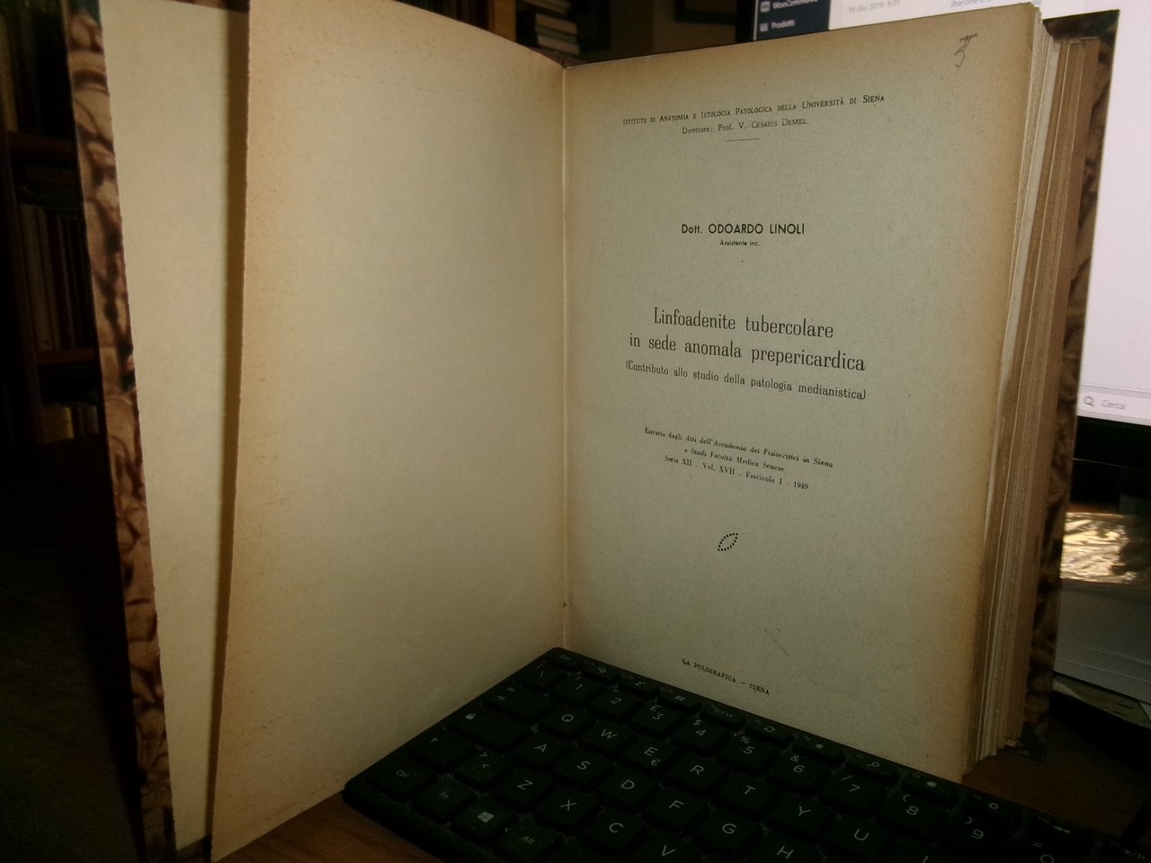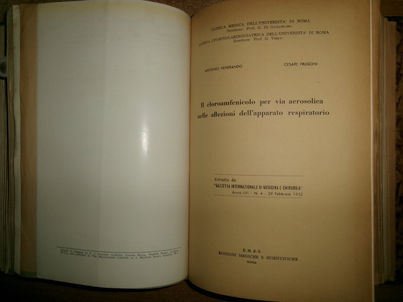 AA. VV. MISCELLANEA di numerosi estratti/opuscoli riguardanti la tubercolosi. Raccolta di numerosi opuscoli/estratti con varie date (dal 1931 in poi) rilegati in un volume in-8°, m-tela con titolo in oro sul dorso con alcune illustrazioni in nero n.t. Testi la maggior parte in italiano ma anche tedesco/inglese e francese con varie dediche al Prof. Domenico Campanacci (alcune firmate dagli Autori). Uff. salon. sporta 11