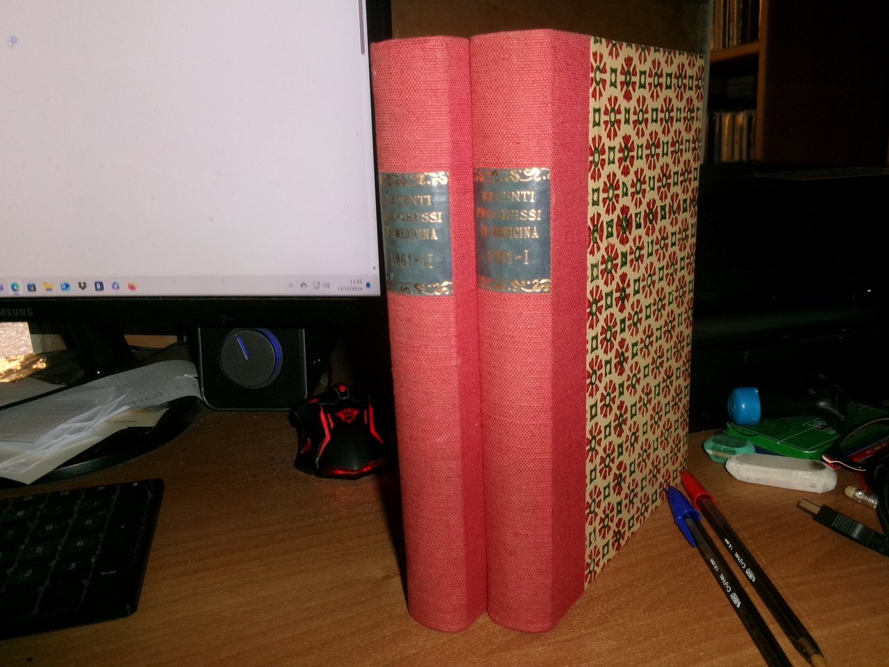 AUTORI VARI. RECENTI PROGRESSI in MEDICINA 1961 2 volumi (Vol. XXX-Vol. XXXI). 2 volumi in-8°, m-tela rossa con titoli in oro entro tasselli ai dorsi. (xiii), 580 pp.; (xiii), 570 pp. con figure in nero n.t. Ottimo stato. Uff. salon. sporta 12