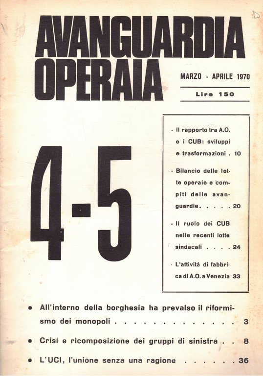 Avanguardia Operaia. Numero 4-5 mar-apr. 1970.