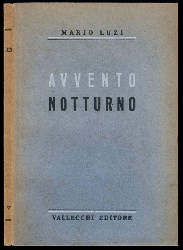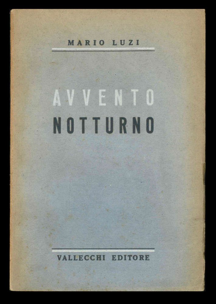LIBROEdizione originale.Esemplare numero 730 (timbro a secco al frontespizio) rilegato con brossure origininali conservate. Piatti fioriti e con lievi e perimentrali mancanze, carte leggermente e normalmente brunite. Firme di possesso al frontespizio (tra cui la firma di Luigi Pautasso datata 1955). Appunti di mano ignota a matita alla terzultima carta.La seconda raccolta poetica dell’autore, che aveva esordito con «La barca» cinque anni prima, per Guanda di Modena. Tiratura non dichiarata ma di mille esemplari contrassegnati con timbro a secco al frontespizio. «[.] l’uscita di “Avvento notturno” da Vallecchi (Firenze) lo [accreditò] tra i poeti nuovi più rilevanti dell’ermetismo, con una poesia di convulsione immaginativa e orfica, sulla scia di Dino Campana e Arthur Rimbaud» (S. Verdino, voce DBI, 2013).