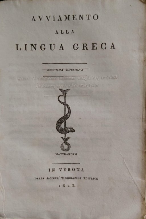 AVVIAMENTO ALLA LINGUA GRECA. Seconda edizione.