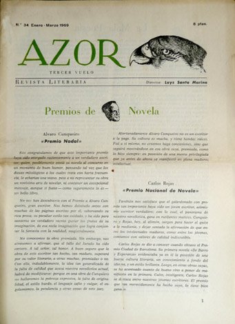 Azor. Tercer vuelo. Revista literaria. Número 34. Enero-Marzo 1969.