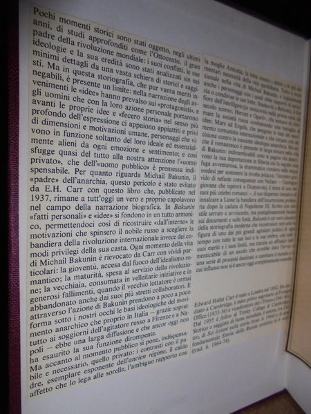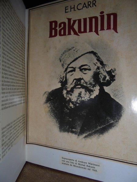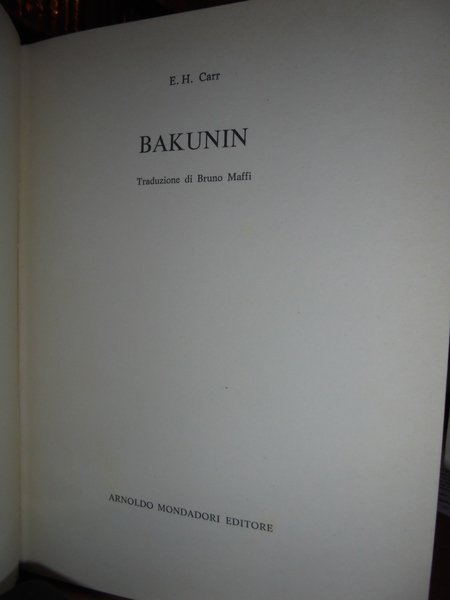 E.H. Carr. Milano, Arnoldo Mondadori, 1977. BAKUNIN. In-8°, tela con titolo in oro al dorso. 479, (2) pp. La sobracopertina è parzialmente presente. Il libro è ben conservato. Uff. TV. mob vetro. carc.