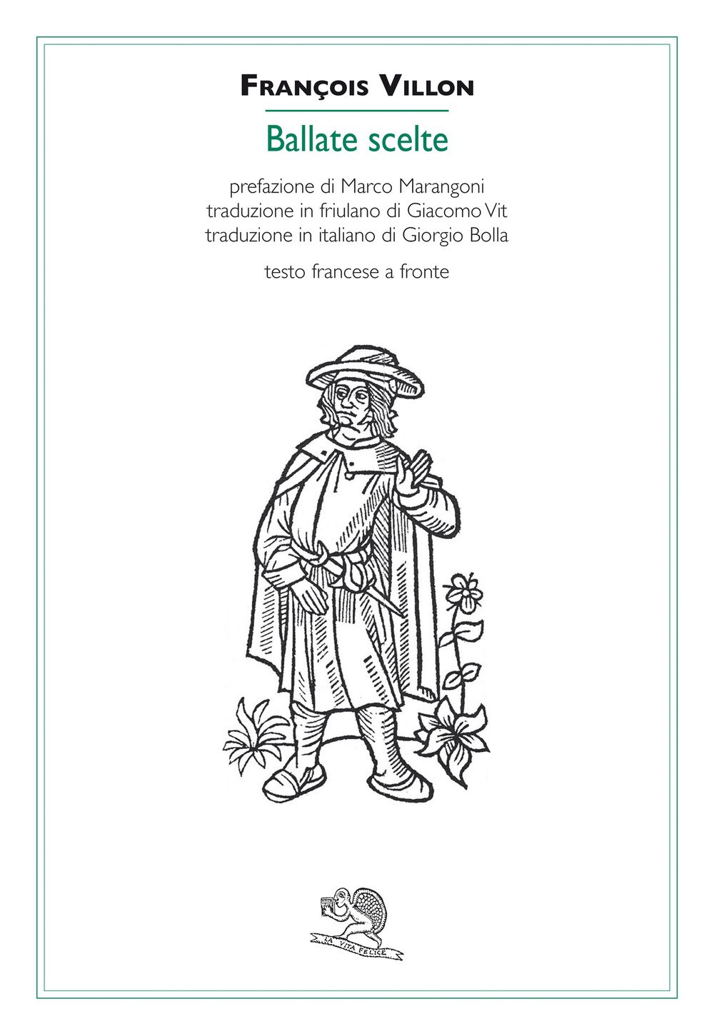 François Villon (Parigi 1431-post 1463), pseudonimo di François de Montcorbier, fu baccelliere nella facoltà delle Arti dell’Università di Parigi (1449), poi licenziato e dichiarato maestro (1452). Abbandonatosi in seguito a una vita irregolare e sciagurata, nel 1463 fu bandito per dieci anni dal territorio di Parigi. Dopo quella data non se ne hanno più notizie certe. L’opera originaria di Villon comprende due poemetti, il Lais e il Testament, liriche sparse, per la maggior parte ballate, e poesie in gergo, dai toni cinici e inquieti, ma sempre su un fondo di sofferta umanità. I moderni lo hanno riconosciuto come il primo grande lirico francese. Prefazione di Marco Marangoni.