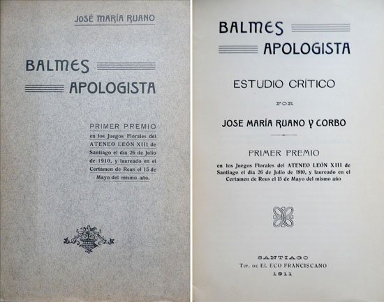 Balmes apologista. Estudio crítico. | Rare and modern books | Ruano, José María.