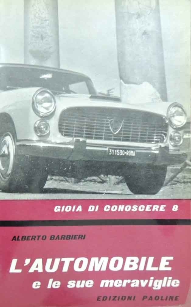 Alberto Barbieri, L’automobile e le sue meraviglie, Edizioni Paoline, s.l. (ma stampato a Vicenza, presso la Pia Società San Paolo) 1960, terza ed., pp. 196, ill. b.n., 8 c. di tavv. f.t. ill. b.n., cm 19, br. ed. Collana Gioia di conoscere. Collana scientifica per la gioventù, n. 8. Disegni di Massimo Biondi Compagnoni e G. Pasutto. Lievi tracce d’uso, minima brunitura della carta, leggere fioriture ai tagli, per il resto buona copia.