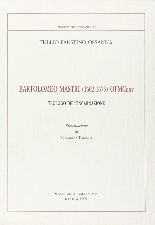 Bartolomeo Mastri (1602-1673) ofm conv. teologo dell'incarnazione, Roma, Miscellanea Francescana, 2002