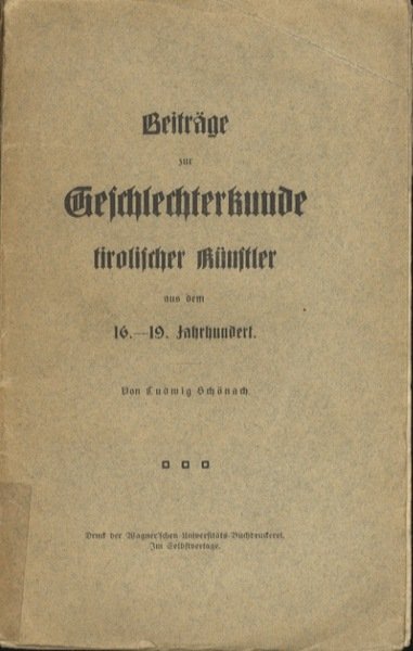 Beiträge zur Geschlechterkunde tirolischer Künstler aus dem 16.-19. Jahrhundert. | Rare and modern books | Schã–Nach, Ludwig.
