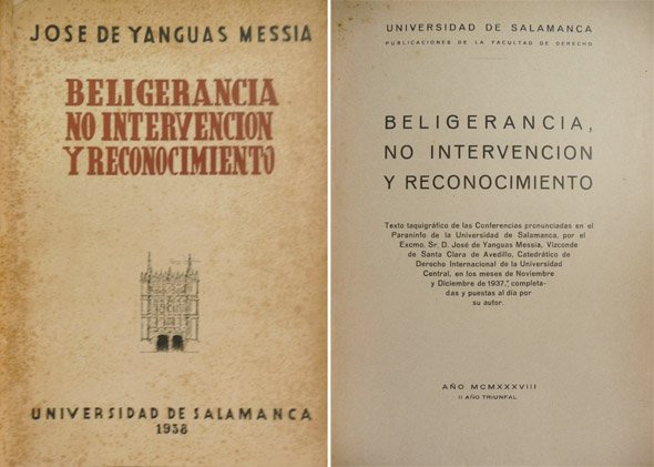 Beligerancia, no intervención y reconocimiento. Conferencias pronunciadas en el Paraninfo de la Universidad de Salamanca.en Noviembre y Diciembre de 1937, completadas y puestas al dia.