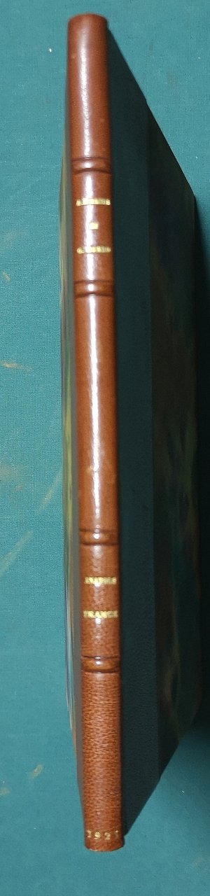 >in-8, pp. 11 con 4 tavole a p. pagina f.t; pp. 33, antiporta figurata da disegno originale di Jouas. Legatura d'amatore in m. marocchino e carta decorata, titolo in oro su dorso a nervi, taglio superiore dorato. Entrambe le brossure editoriali conservate. Ensemble di opere su Anatole France, assai rare, di cui la prima impressa in soli 150 esemplari. Perfetto esemplare.