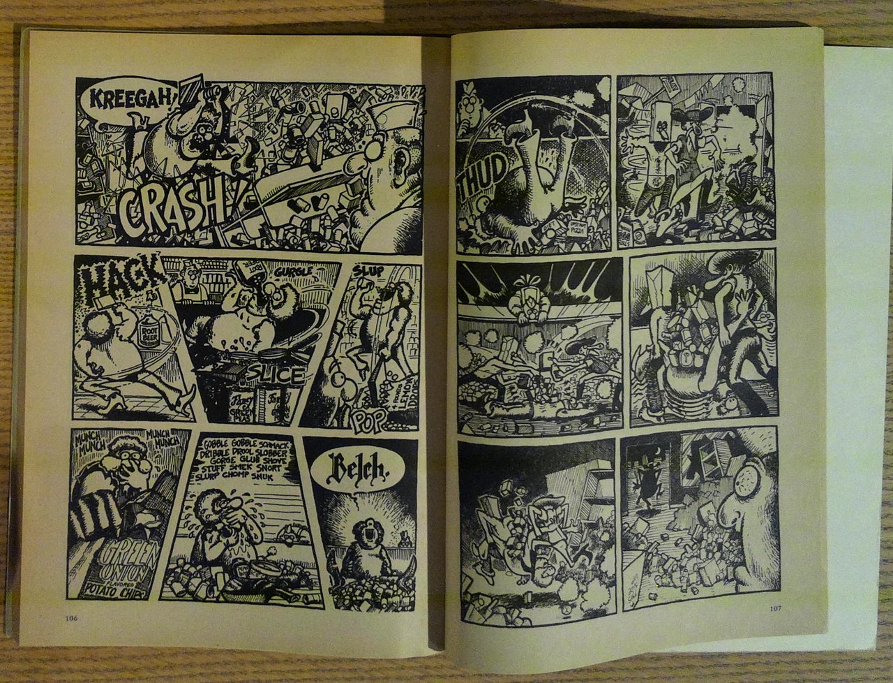 Book has light wear to covers, edges, corners, no tears. Color covers, b&w comics throughout reprinted on age-toned paper. Binding is solid and square, text/interior is clean and free of marking of any kind. Some of the best comics indeed with Wonder Warthog and the Invasion of the Pigs from Uranus, Dealer McDope, Tricky Prickears, F.B.I. parody, All Meat comics by Crumb, Scenes from the Revolution: the Legendary Dope Famine of '69 by Gilbert Shelton, Jesus meets the Armed Services, by Foolbert Sturgeon; etc. An impressive compilation.