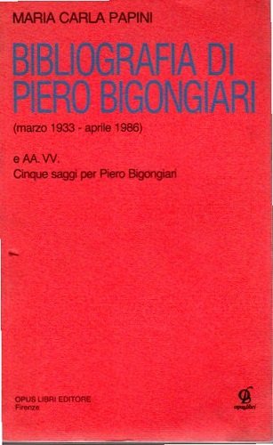 Bibliografia di Piero Bigongiari marzo 1933 aprile 1986 e aa vv cinque saggi per Piero Bigongiari