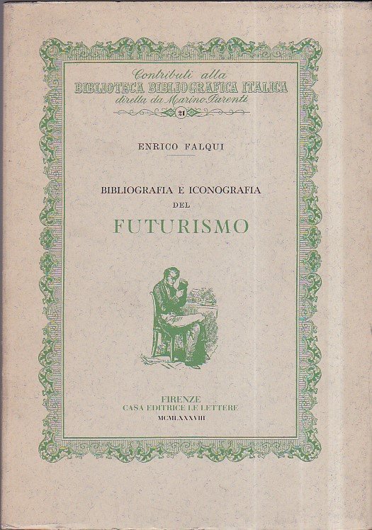 In-8°, pp. 239, (3), brossura editoriale con vignetta in verde e titolo entro bordura egualmente in verde. 100 tavv. f.t. su carta patinata. Perfetta copia intonsa. Ristampa anastatica dell'edizione originale del 1959 di questo pionieristico repertorio bibliografico e iconografico del Futurismo. Contributi alla Biblioteca Bibliografica Italiana diretta da Marino Parenti, 21.