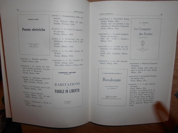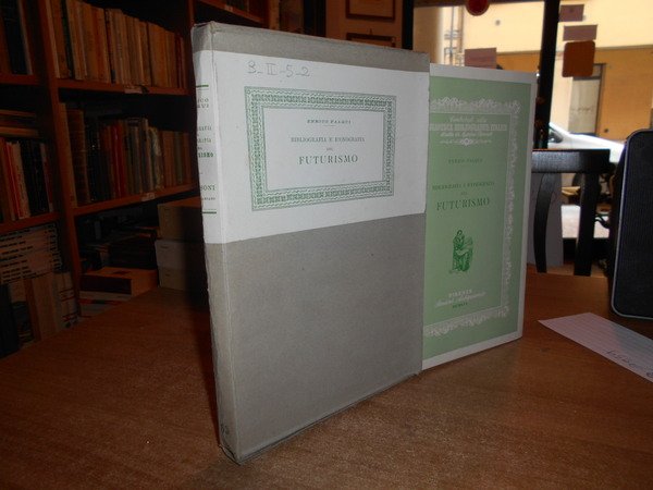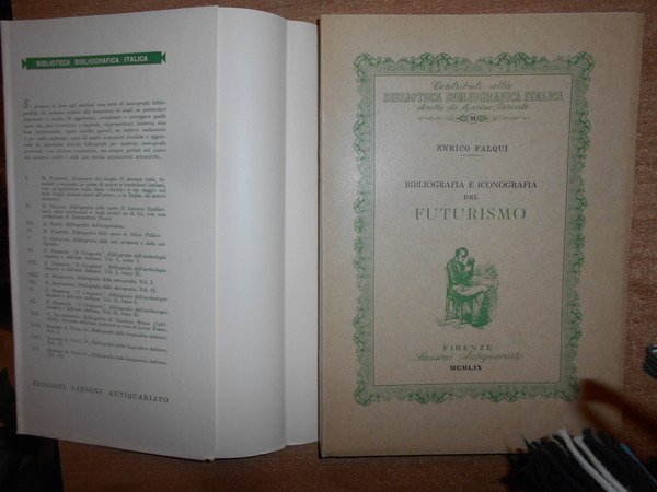 ENRICO FALQUI. Firenze, Sansoni Antiquariato, 1958/1959. BIBLIOGRAFIA e ICONOGRAFIA del FUTURISMO. In-8°, cartoncino edit. con sovracopertina. 239, (1) pp. che comprendono nella numerazione 100 tavole. Lievi segni del tempo nell' astuccio. Libro a fogli chiusi. Uff. B - II - 5 - 2