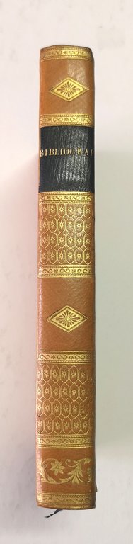 >in-8, pp. pp. VII, 260, (2), legatura coeva m. pelle ed angoli, titolo in oro su tassello e bei fregi in oro al dorso, tagli spruzzati. Edizione originale. L'opera, il cui autore si desume dall'Avviso agli Editori, si compone di un Elenco ragionato delle 250 opere che costituivano la collezione, seguito dal (pp. 199 - 255) Prospetto dell'Edizione de' Classici Italiani in 250 volumi, con i prezzi di ogni opera, e dell'indice infine. Ottimo esemplare, freschissimo e a pieni margini. Vallée, n. 624.