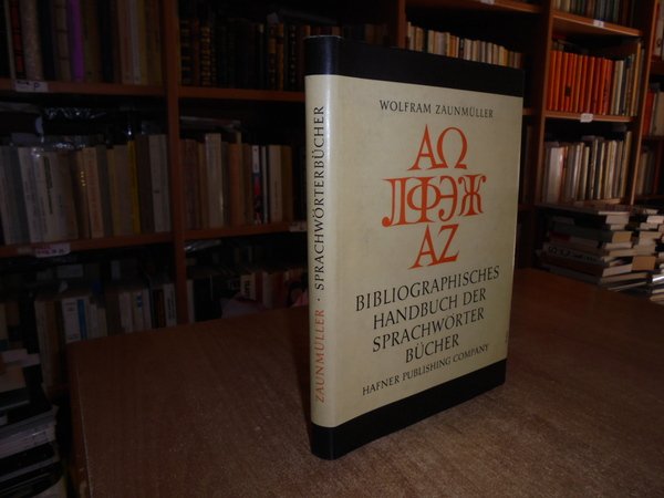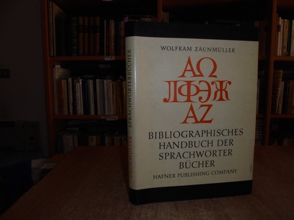 Wolfram Zaunmüller. New York/London - Stuttgart, Hafner Publishing Company, 1958. Bibliographisches Handbuch der Sprachwörter bücher. In-8° grande, tela edit. con titoli in oro sul piano e al dorso. xvi, 495 pp. Ottimo lo stato di conservazione. Uff. A - II - 5