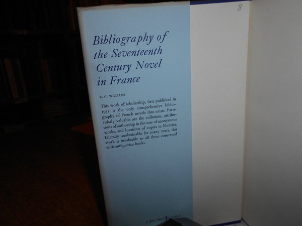 Ralph Coplestone Williams. London, Holland Press, 1964. BIBLIOGRAPHY of the Seventeenth Century Novel in France. In-8° piccolo, tela edit. bleu con titolo in oro al dorso, sovracopertina. xiii, 355 pp. In ottimo stato di conservazione. Uff. E - III - 3