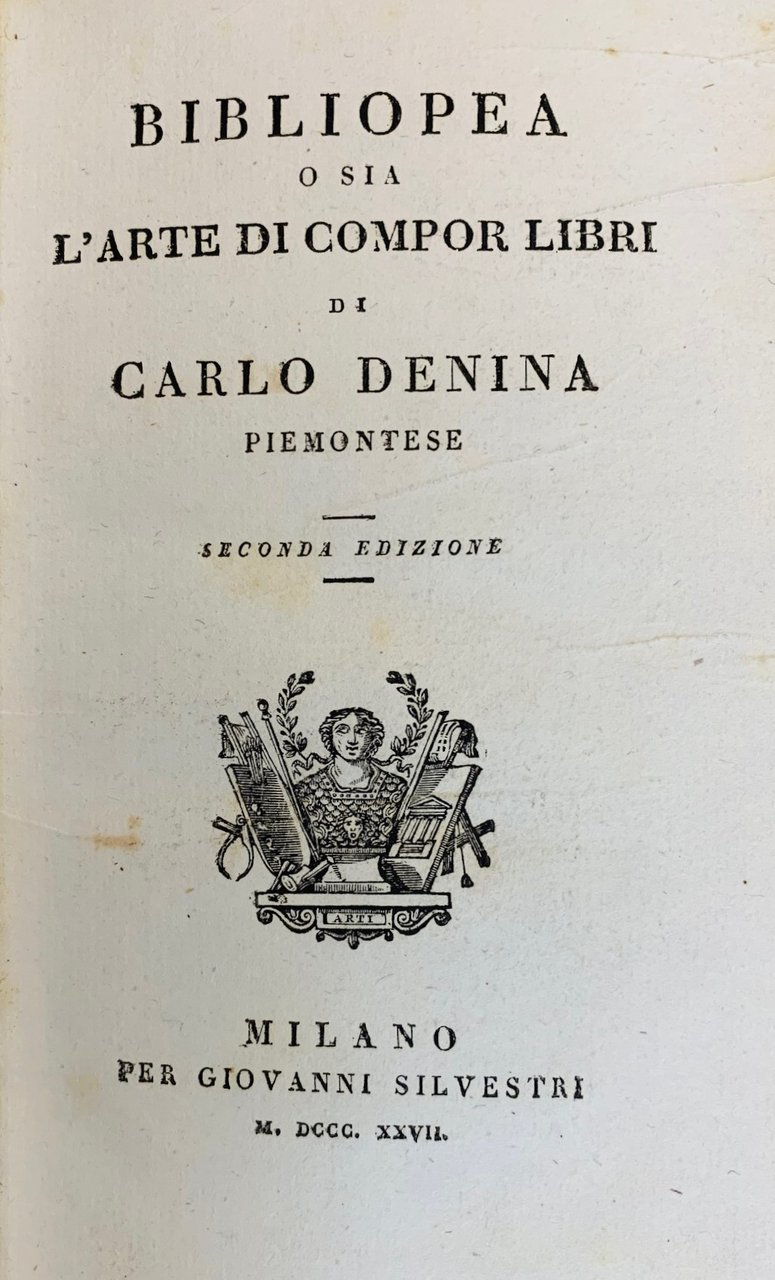 >in-8, XVI, 378, (6), legatura mezza percallina, titolo oro e fregi al dorso a nervi. Seconda edizione di questo curioso e non comune saggio che raccoglie tutti gli insegnamenti parziali delle retoriche e delle poetiche tradizionali e li inserisce in un progetto complessivo che abbraccia il libro nella sua totalità, compresi gli aspetti tradizionali quali la stampa.