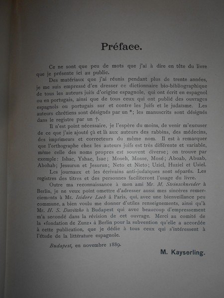 Biblioteca Española-portuguesa-Judaica. Dictionnaire Bibliographique des Auteurs Juifs, de leurs ouvrages espagnols et portugais et des oeuvres sur et contre les Juifs et le Judaisme