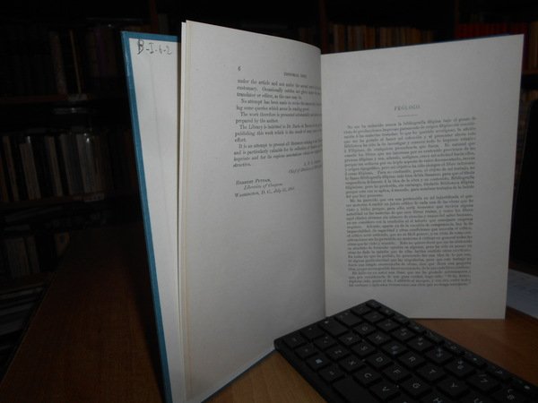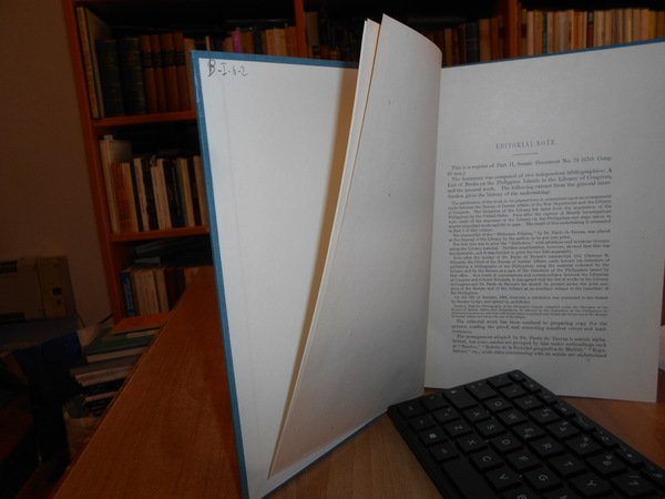 T. H. PARDO DE TAVERA. Washington, Governement Printing Office, 1903. BIBLIOTECA FILIPINA O SEA CATALOGO RAZONADO DE TODOS Los Impresos tanto Insulares como Extranjeros, relativos a la Historia, la Etnografia, la Botanica, la Fauna, la Flora, la Geologia, la Hidrografia, la Geografia. In-8°, tela edit. con titolo in oro entro tassello al dorso. 439 pp. Perfetto esemplare. Uff. B - I - 6 - 2
