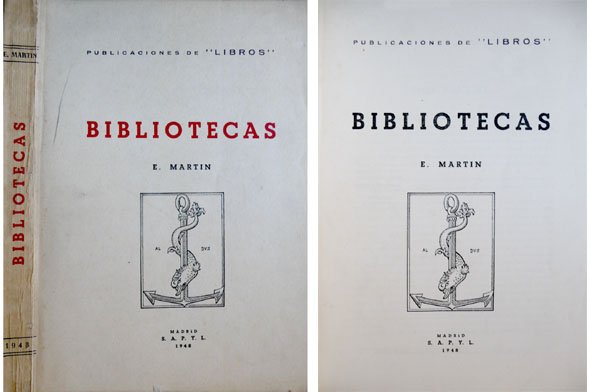 Bibliotecas. Introducción de Belén Marañón. | Rare and modern books | Martin, E. (Enrique Martín Ortiz De La Tabla).