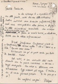 Biglietto autografo firmato, datato 3 giugno 1957 - Roma, inviato al critico e storico della letteratura Sergio Pautasso.
