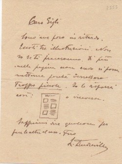 Biglietto autografo firmato, senza data e luogo, inviata a “Caro Gigli“.