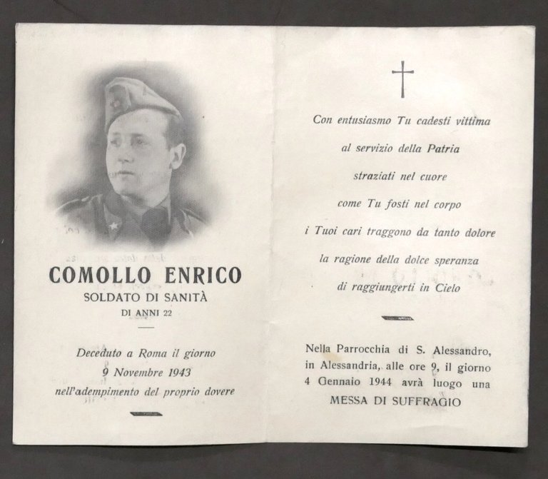 Biglietto Commemorativo Soldato di Sanità Comollo Enrico - Roma 1943