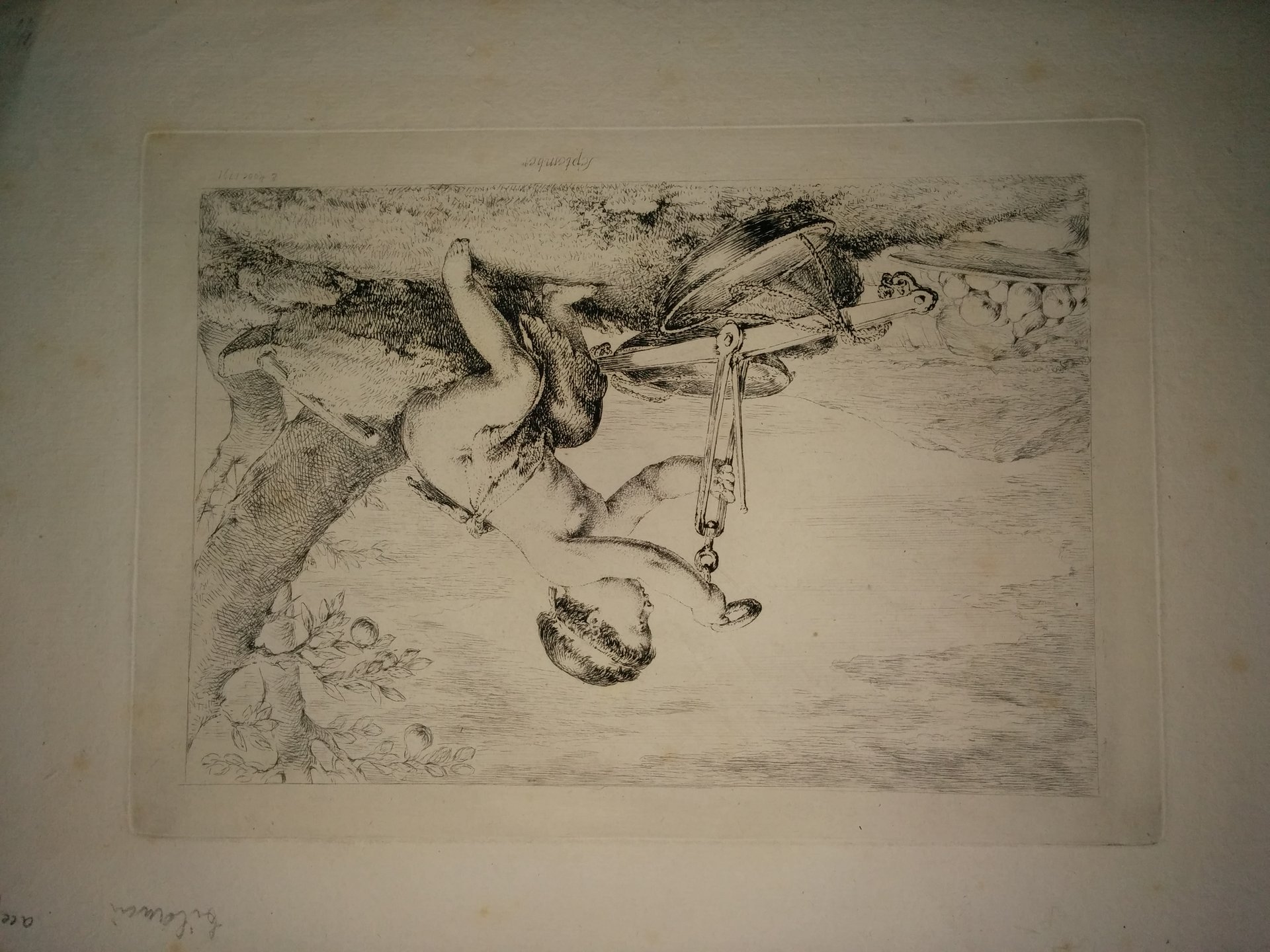 >Incisione in rame. Il mese di Settembre personificato. Il segno del Bilancia.